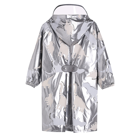 Imperméable à capuche imperméable imprimé de dinosaure de dessin animé mignon pour les filles Long cartable espace réfléchissant pour les activités de plein air scolaires