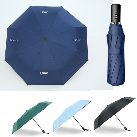 Parapluie promotionnel 3 8K pliant bon marché Parapluie extérieur étanche et anti-UV Parapluie de couleur unie avec impression de logo personnalisé