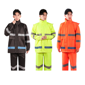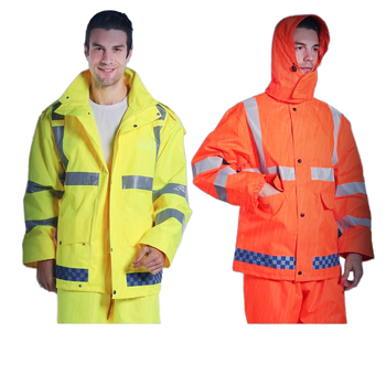 300D大型交通税防水高速道路管理レスキュー反射レインコートパンツセットオックスフォードハイキング用布