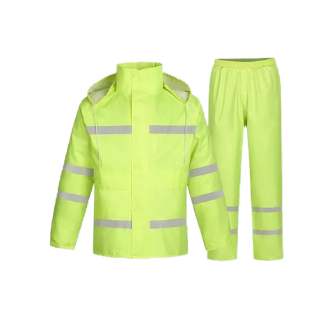 高密度オックスフォード布蛍光グリーン反射レインコートとパンツセット二層防水レスキュースプリット旅行用