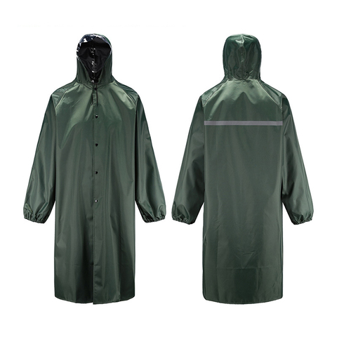 大人のフード付きロングレインコートアーミーグリーンフード付きレインコート防水オックスフォードクロス屋外ロングレインコート反射ストリップ付き